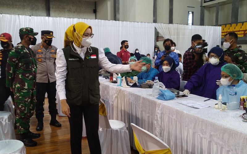 “Hari Kita menyelesaikan sisa dari tenaga pengajar atau guru yang belum di vaksin. Saat ini untuk guru atau tenaga pengajar yang sudah di vaksin baru 91 persen, maka dari itu hari ini kita selesaikan,” ungkap Bupati Purwakarta, Anne Ratna Mustika saat tinjau vaksinasi di Gelanggang Olahraga Purnawarman, Kabupaten Purwakarta pada Kamis (17/6/2021).