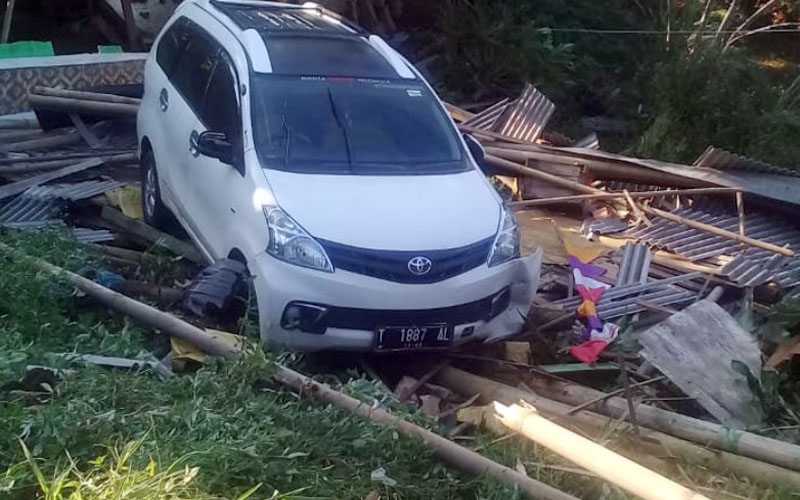 Mobil Avanza Tabrak Warung Sate Maranggi Hingga Terjun ke Jurang di Wanayasa