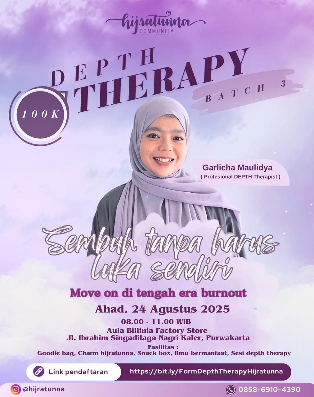 Berangkat dari keresahan itu, komunitas Hijratunna kembali menghadirkan “Depth Therapy Batch 3” sebagai wadah pemulihan perasaan negatif sekaligus penguatan spiritual.