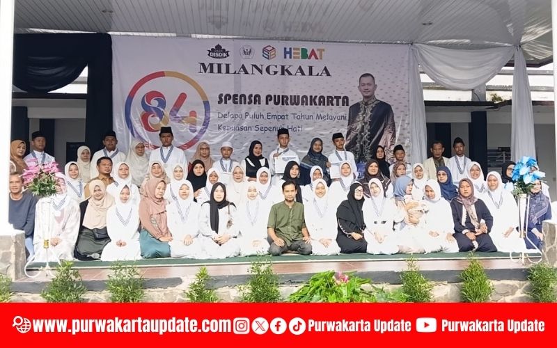 “Kebetulan hari ini bertepatan dengan Milangkala ke-84 SMP Negeri 1 Purwakarta. Selama ini SMPN 1 konsisten memprogramkan Tahfidz Al-Qur’an. Tadi kita saksikan bersama munaqosah dan wisuda Tahfidz, dengan 30 siswa lulus hafalan Juz 29 dan Juz 30. Ini capaian yang luar biasa,” ungkapnya.