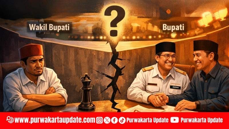 Ilustrasi dinamika kepemimpinan Bupati dan Wakil Bupati Purwakarta yang jadi sorotan publik. (Foto: Created by AI)