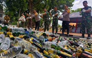 “Selama periode tersebut, miras yang berhasil kami amankan sebanyak 3.520 botol miras pabrikan, 742 botol miras oplosan, 215 bungkus plastik tuak dan 650 liter ciu,” jelas pria yang terkenal murah senyum itu.