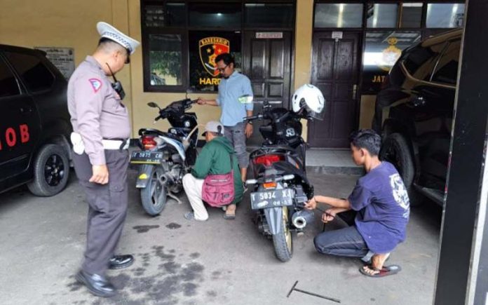 Penindakan pengendara motor yang menggunakan knalpot brong di Kabupaten Purwakarta.