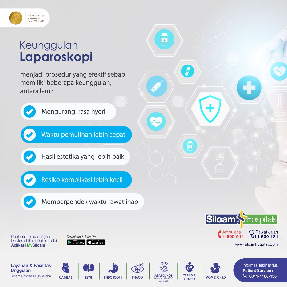Keunggulan dari prosedur Laparoskopi diharapkan bisa mengurangi kekhawatiran pasien yang memerlukan tindakan untuk penanganan masalah organ reproduksi.