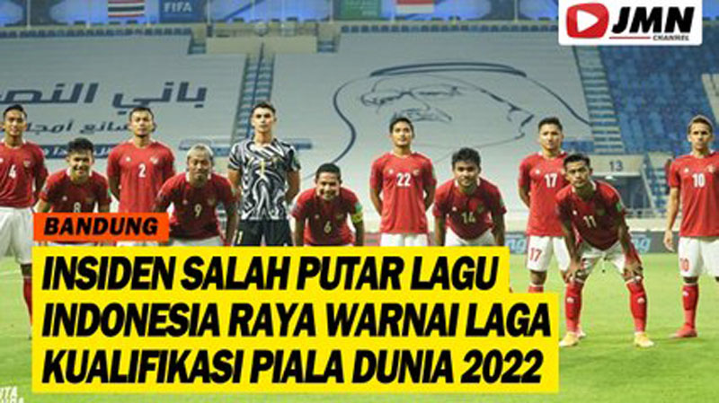 JMNChannel.com | Lagu kebangsaan Indonesia salah diputar menjelang laga kontra Uni Emirat Arab. Bukannya Indonesia Raya yang diputar justru lagu kebangsaan Malaysia.