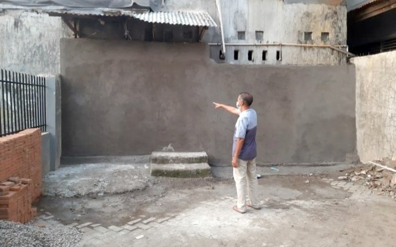 Tembok yang dibangunnya menutup akses pintu belakang Rumah Tahfiz Nurul Jihad. Amiruddin mengaku terganggu dengan anak-anak tahfiz di depan rumahnya.