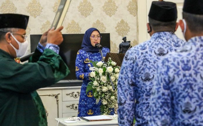 Purwakarta Update | Bupati Purwakarta Anne Ratna Mustika memimpin Pelantikan dan Pengambilan Sumpah Jabatan Administrator dan Jabatan Pengawas dilingkungan Pemerintah Kabupaten Purwakarta di Bale Nagri, Jumat 17 Juni 2022.