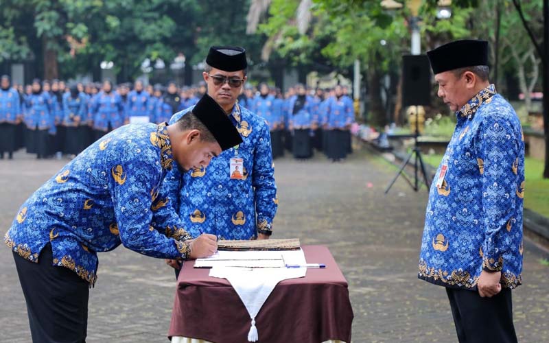Purwakartaupdate.com, Purwakarta – Penjabat Bupati Purwakarta, Benni Irwan melantik dan mengambil sumpah dan janji jabatan 1.351 Pegawai Pemerintah dengan Perjanjian Kerja (PPPK) formasi tahun 2023, bertempat di Taman Pasanggrahan Padjajaran, Alun-alun Pemkab, Senin 03 Juni 2024.
