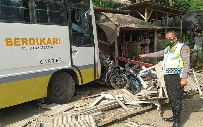 “Tak ada korban jiwa dalam peristiwa ini, hanya motor atas nama Irma dan pengemudi bus tersebut mengalami luka-luka dan dievaluasi ke Siloam Hospital Purwakarta. Selain itu empat motor milik tukang ojek rusak dan pangkalan ojek pun hancur,” ucap Budiharto.