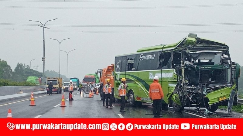 Bus Rombongan Asal Banten Kecelakaan di Tol Cipali KM 78A Purwakarta, Satu Tewas dan 28 Luka-Luka