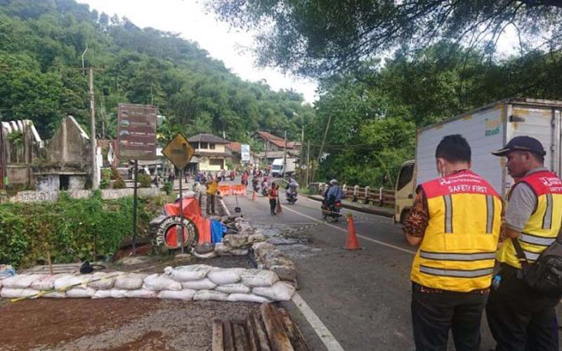 “Saat ini kami lagi melakukan pemeriksaan dengan tim gabungan lainnya. Memastikan apakah jembatan ini aman untuk dilalui atau tidak, karena bila dilihat oleh kami jembatan ini masih banyak retakan-retakan berbahaya. Untuk sementara kendaraan bisa melintas dengan cara bergantian,” Jelas Sandri.