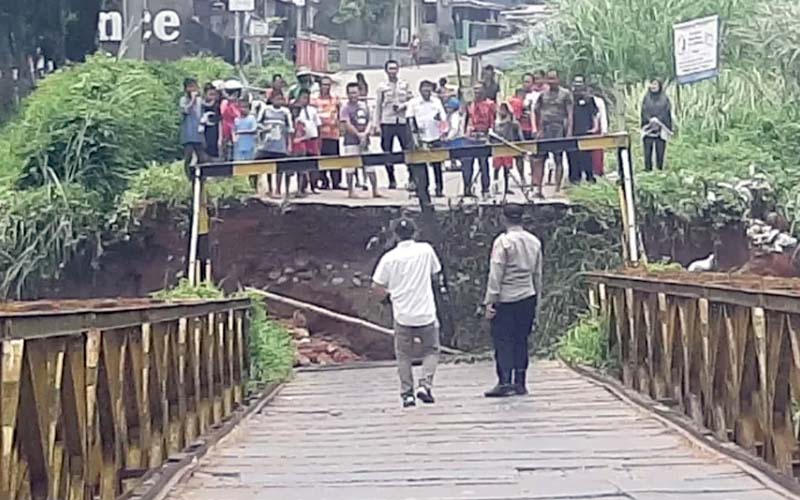 “Dikarenakan terjadinya pergerakan tanah dan debit air yang cukup banyak sehingga mengikis bibir sungai menyebabkan Jembatan Ciherang penghubung dua kecamatan amblas,” ujar Kompol Budi, Selasa (7/3/2023).