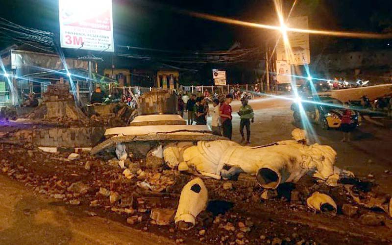 “Saat truk melaju di jalan yang menurun dan menikung ke kanan, supir truk kurang antisipasi sehingha menabrak pembatas jalan lalu patung bima dan bus karyawan yang keluar dari arah Jatiluhur,” ucap Warjo.