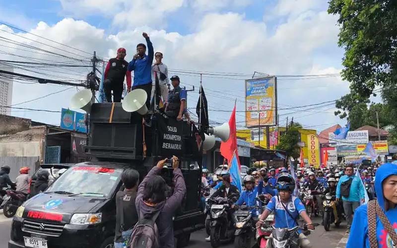 Koordinator aksi dari Federasi Serikat Pekerja Metal Indonesia (FSPMI), Fuad, menjelaskan tiga tuntutan utama dalam aksi unjuk rasa ini.