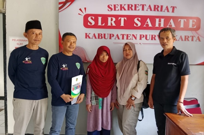 Tim TRC Dinsos P3A Kabupaten Purwakarta bersama relawan PSM Desa Cipendeuy saat mendampingi Masitoh (tengah) di Sekretariat SLRT Sahate Kabupaten Purwakarta. (Foto: Istimewa)
