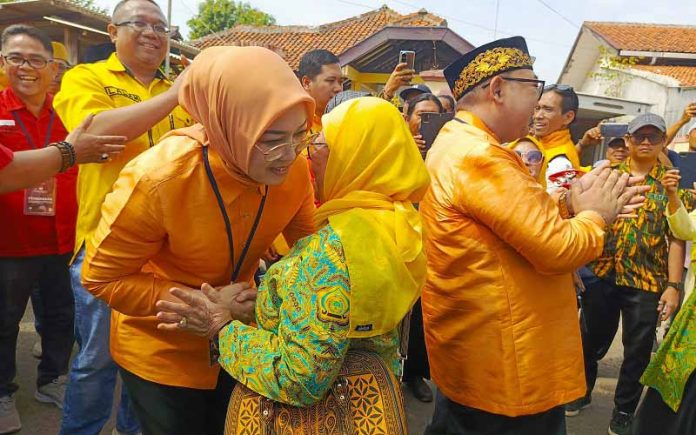 Pasangan Anne Ratna Mustika dan Budi Hermawan di iringi arak-arakan oleh ribuan masyarakat pendukung dan simpatisan baik berjalan kaki maupun mengunakan kendaraan serta dimeriahkan grup kosidahan emak-emak.