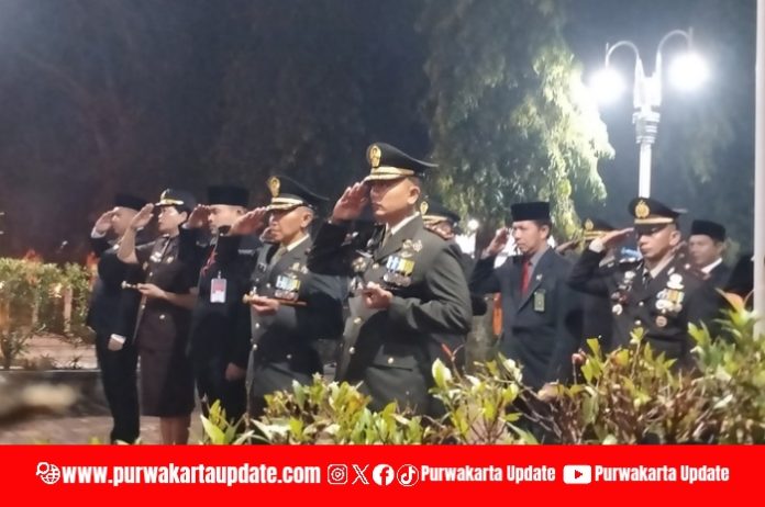 Upacara dimulai tepat pukul 23.53 WIB, dipimpin langsung oleh Kapolres Purwakarta AKBP I Dewa Putu Gede Anom Danujaya, S.H., S.I.K., M.H., serta diikuti oleh sekitar 150 peserta yang terdiri dari unsur TNI, Polri, pemerintah daerah, organisasi masyarakat, dan anggota Pramuka.