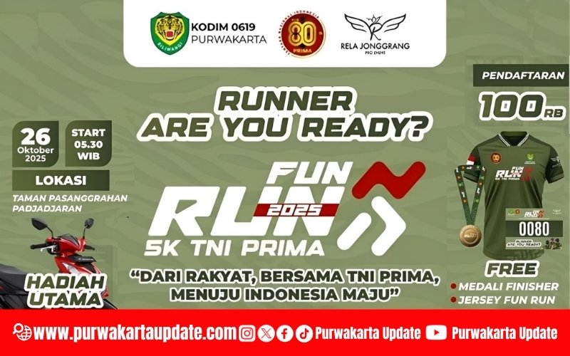 “Momentum HUT TNI ke-80 ini kami maknai sebagai wujud kebersamaan dan kedekatan antara TNI dan rakyat. Melalui kegiatan Fun Run ini, kami ingin mengajak masyarakat Purwakarta untuk berpartisipasi aktif, berolahraga bersama, dan memperkuat semangat persatuan demi Indonesia yang lebih maju,” ujar Letkol Ardha.