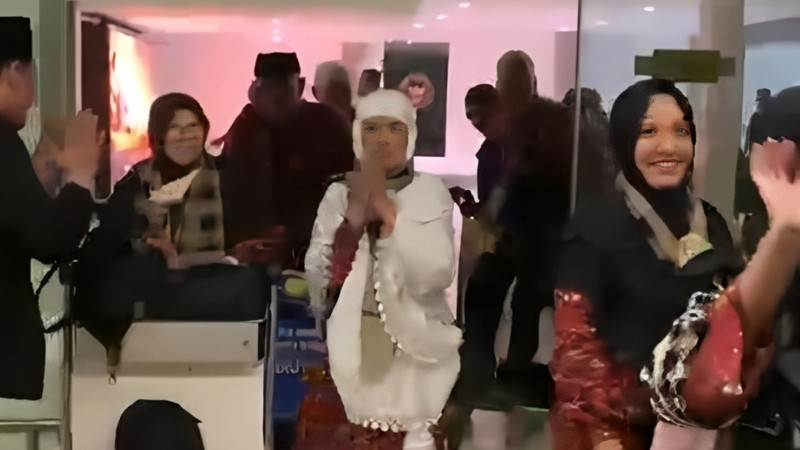 Rombongan tersebut mendarat melalui Bandara Soekarno-Hatta, Tangerang, Banten, sebelum melanjutkan perjalanan ke kantor Rizma Tour di Subang.