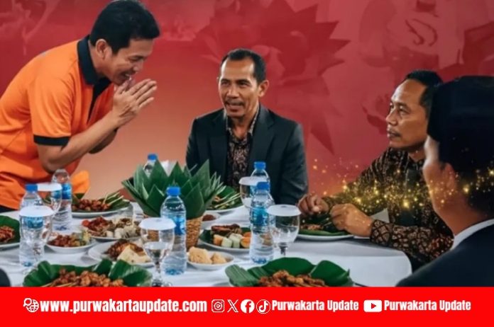 Ilustrasi petugas kebersihan tengah menikmati jamuan gala dinner pada perayaan Hari Jadi Purwakarta 2025. (Foto: Instagram/@diskominfopwk)