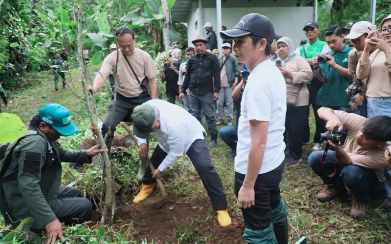 Purwakartaupdate.com, Purwakarta – Bupati Purwakarta, Saepul Bahri Binzein bersama jajaran Dinas Kehutanan Provinsi Jawa Barat, menanam seribu pohon di kawasan Agroforestry Leuweung Tiis, Desa Salem, Kecamatan Pondoksalam, Kabupaten Purwakarta, pada Sabtu, (15/3/2025).