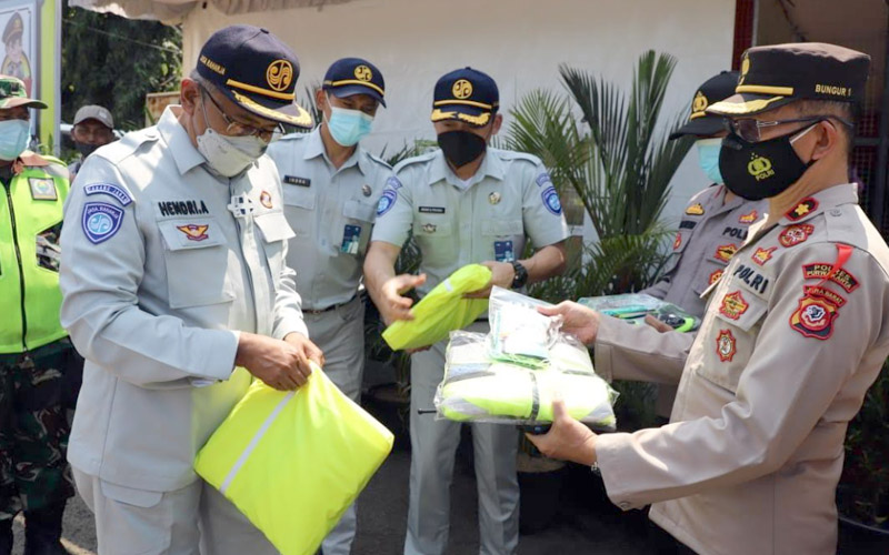 PURWAKARTAUPDATE.com | Dalam rangka membantu pihak kepolisian lalu lintas dan penjaga di pos-pos penyekatan pemudik, PT Jasa Raharja Member of IFG menyiapkan 100 unit Lampu Kejut untuk dipasang di pos penyekatan mudik lebaran di tahun 2021.