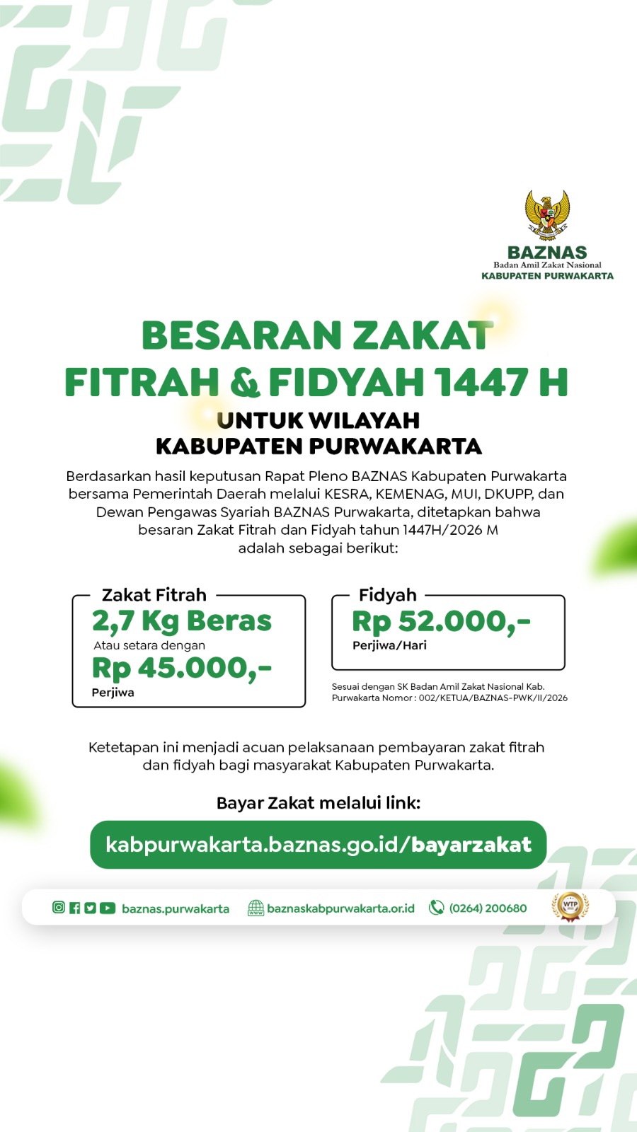 Jelang Ramadan 1447 H, BAZNAS Purwakarta Umumkan Zakat Fitrah Rp45 Ribu