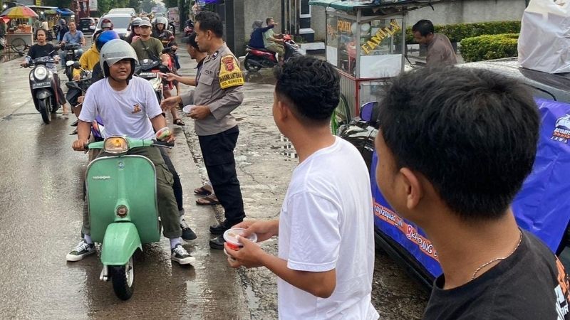 Para anggota turun langsung ke jalan membagikan paket takjil yang berisi makanan dan minuman kepada masyarakat yang sedang menjalankan ibadah puasa, khususnya para pengguna jalan yang melintas menjelang waktu berbuka.