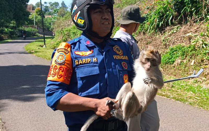 “Adapun proses evakuasi monyet liar itu diketahui berlangsung sekitar kurang lebih 1 jam. Yang diamankan jenis monyet liar, satu ekor, sudah dewasa,” jelasnya.