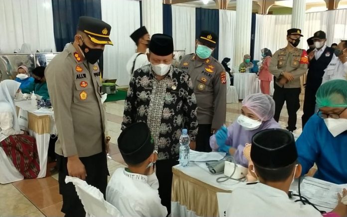 “Gerakan masif vaksinasi serentak yang dicanangkan Bapak Presiden ini sebagai upaya mempercepat memutus mata rantai Covid-19 dan membentuk herd immunity bagi masyarakat. Kali ini menyasar pesantren dan rumah ibadah. Yang sudah mulai berjalan pendidikan dan ibadah tatap muka,” ucap AKBP Ali, usai memantau vaksinasi para santri, pengurus ponpes dan warga sekitar ponpes Al-Hikamussalafiyah Cipulus, Pada Selasa (7/9/2021).