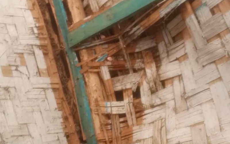 Beberapa bagian bahkan berlubang besar, membuat sinar matahari menembus langsung ke dalam ruangan. Saat hujan turun, air dengan mudah masuk dan membasahi lantai serta perabotan di dalam rumah.