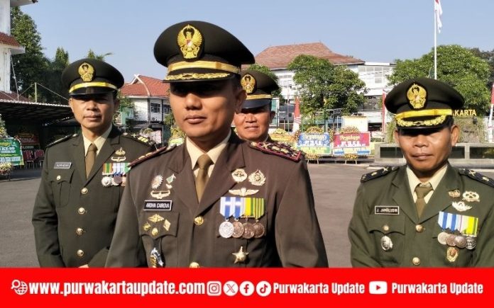 Dandim 0619/Purwakarta Letkol Inf Ardha Cairova Pariputra bersama jajaran perwira TNI usai upacara HUT ke-80 TNI di Makodim Purwakarta. (Foto: Ist)