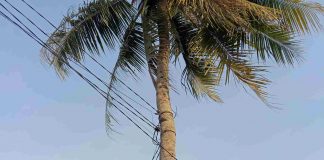 Aneh Tapi Nyata, Pohon Kelapa Dijadikan Tiang Utilitas Kabel Listrik Kwh