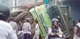 Kecelakaan Truk Terguling Menimpa Satu Motor Milik Warga di Jalan Pramuka...