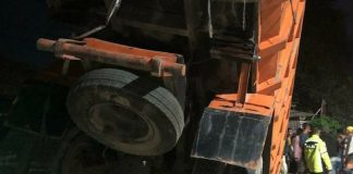 Mobil Dump Truck Seruduk Warung dan Rumah Warga di Jalan Raya...